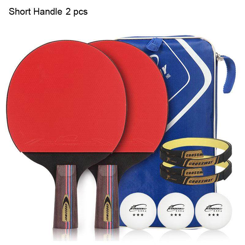 2022- 2pcs/lot Table Tennis Bat Racket Long Short Handle Ping Pong Paddle Racket Set With Bag 3 Balls Double Face Pimples In