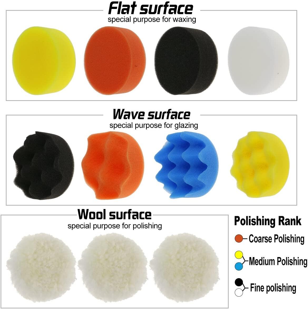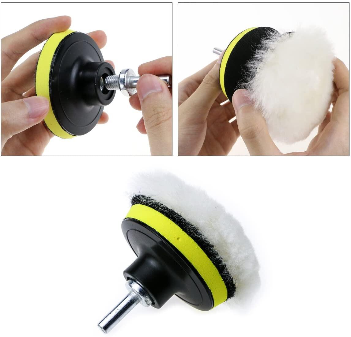 25Pcs 3inch Polishing Sponge Wheel Buffing Pad Set for Glass/Car Polisher with 2pcs M10 Drill Adapter Pad Set For Car Polisher