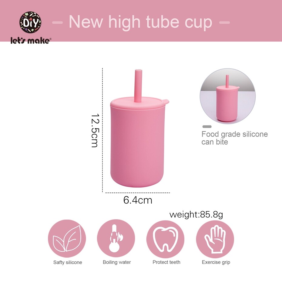 Let's Make Silicone Cup 1PC High Temperature Disinfection Sippy Cups with Cover and Straw Baby Feeding Stuff