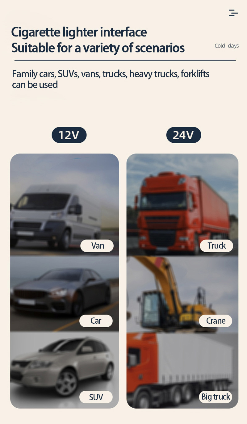 UNIVERSAL: Use the variable air speed control to adjust the wind flow and direction of the heads. Just plug in the 12/24V connector to the lighter adapter.
