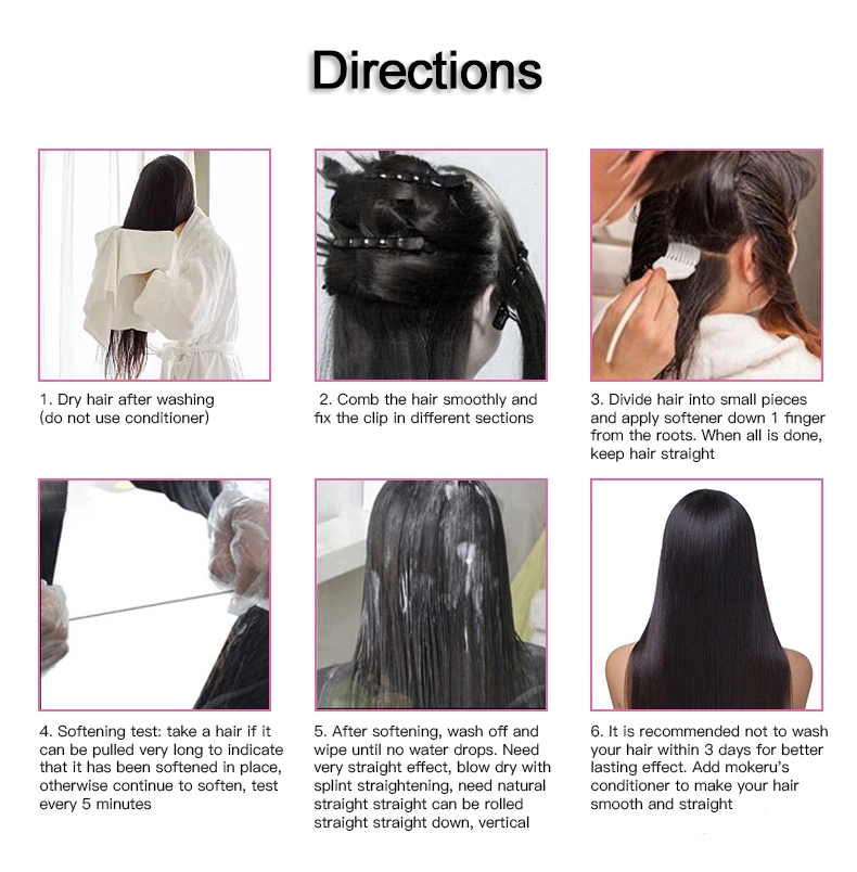3. After softening (hair can be lengthened 1-2 times) rinse with warm water (do not use shampoo, rinse time should not exceed 5 minutes), blow dry;