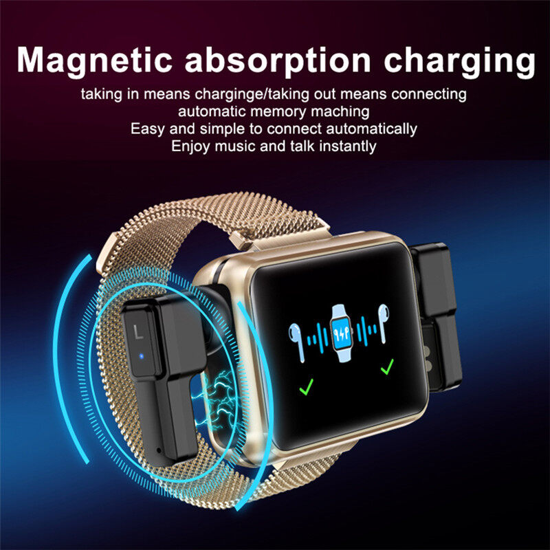 LEMFO T91 Smart Watch 2 in 1 TWS Wireless Bluetooth Earbuds 1.4 Inch Heart Rate Blood Pressure Fitness Smartwatch Bracelet Earbuds for Sport