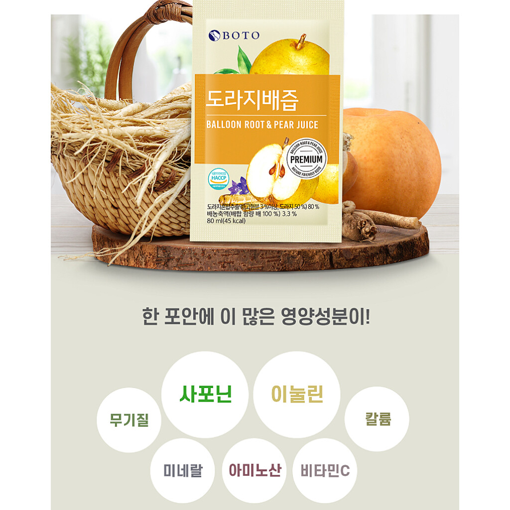 KOREA BOTO 100% Real Pure Premium Juice 60EA Balloonroot and Pear