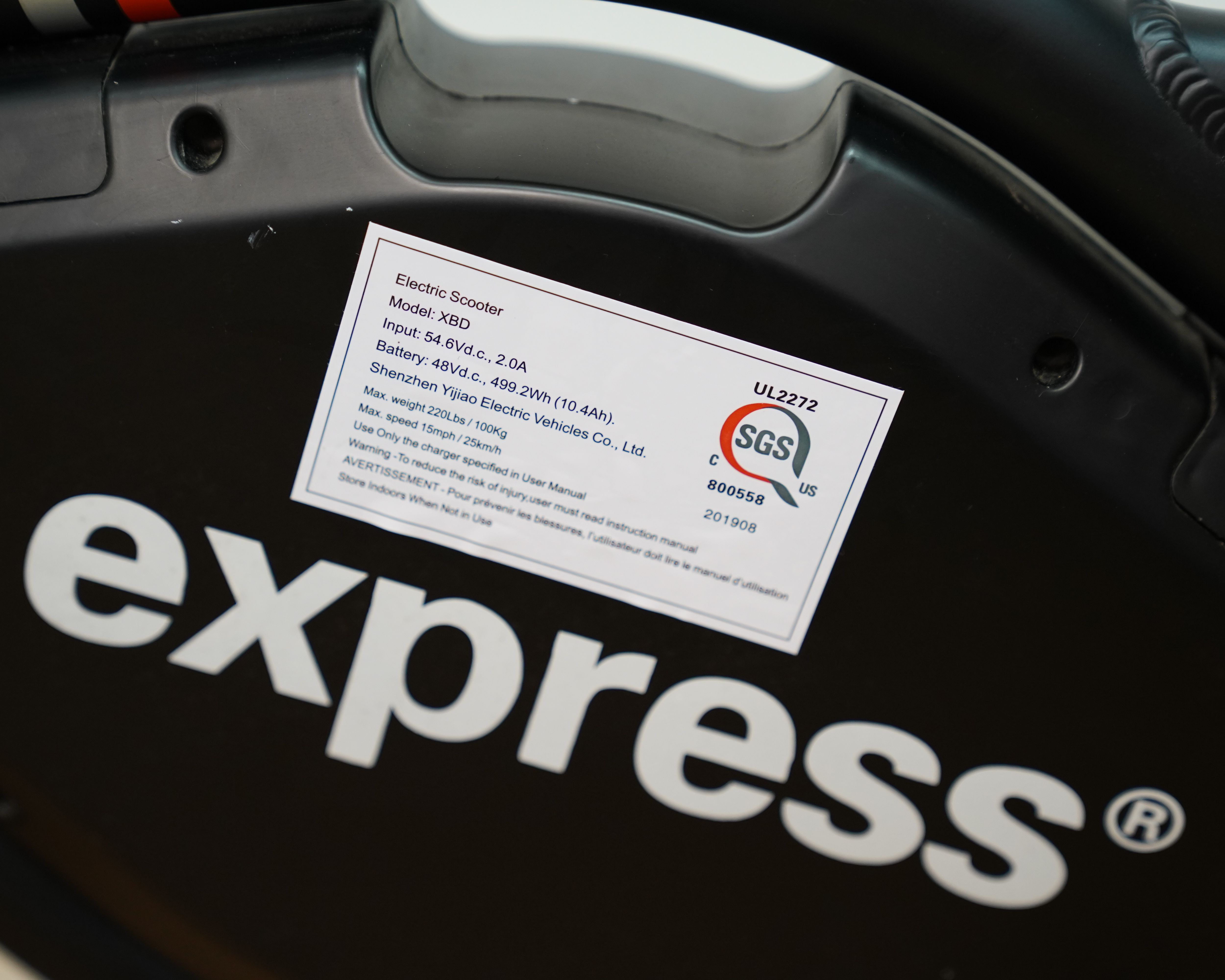 48V 10.4Ah AM Express Electric Scooter E Scooter UL2272 LTA Approved With Front & Rear Suspension Max Load 120KG Front & Rear Lights Suitable For Food Delivery & Leisure