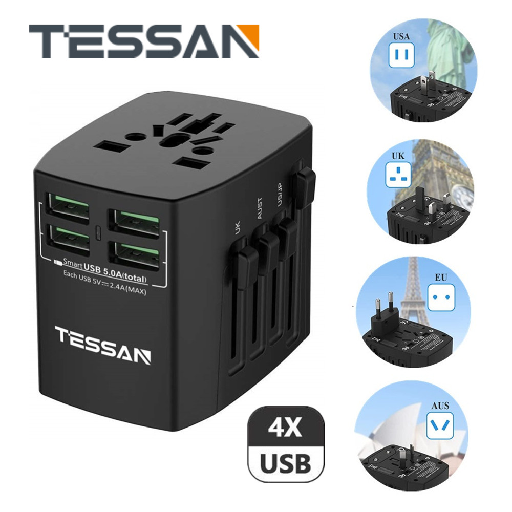• Portable and compact: Tessan travel plug. Thanks to the integrated USB slots, you save many small USB chargers. For all travellers, it is a great companion.