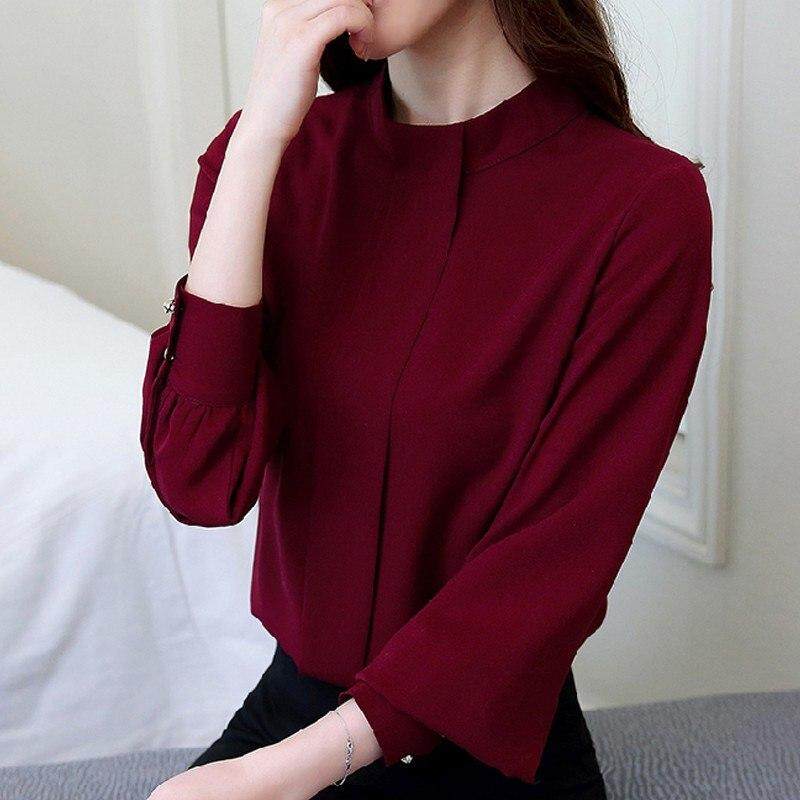 New Autumn Spring Tops Women Fashion Ladies Long Sleeve Shirts Casual Chiffon Blouse 2019 Work Wear Office