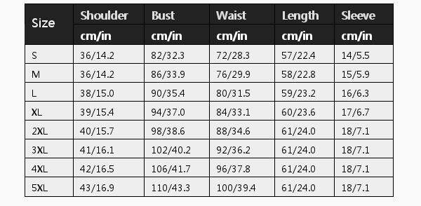 Size Shoulder Bust Waist Length Sleeve