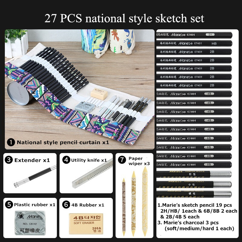 27/ 41 combination is optional. See below for details27 PCS national style sketch set