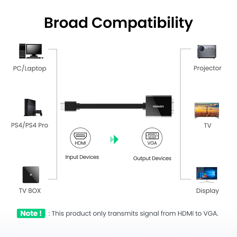 UGREEN 25CM HDMI to VGA Adapter 1080P 60Hz Digital to Analog Video Audio Converter Cable HDMI VGA Connector for Xbox 360 PS4 PC Laptop TV Box-Black