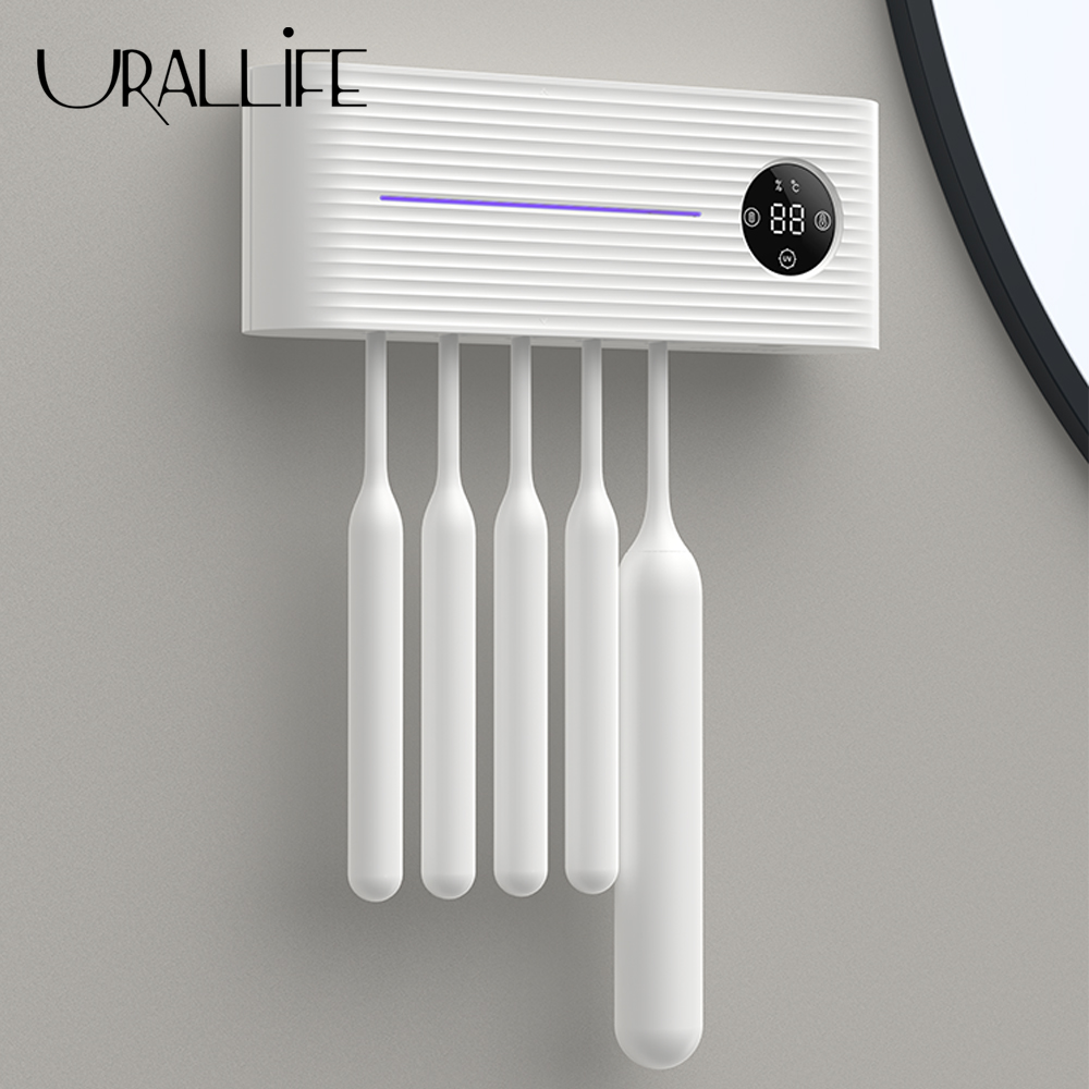 URALLIFE 2 in 1 UV Light Ultraviolet Toothbrush Sterilizer with Automatic Toothpaste Squeezers Dispenser Ultraviolet Antibacteria Toothbrush Toothpaste Holder Cleaner With LED Display For Toilet Home Bathroom Accessories Set
